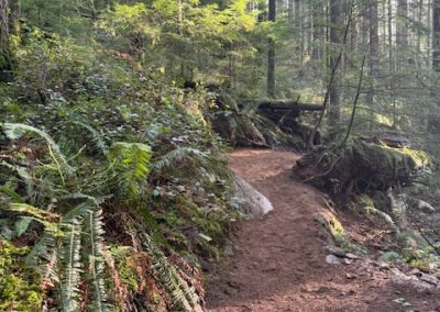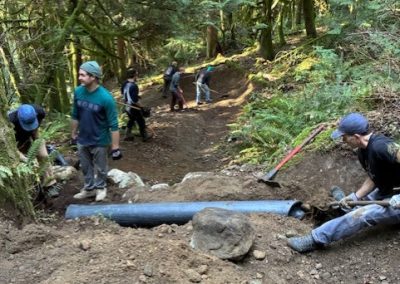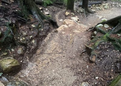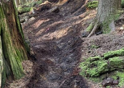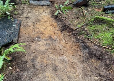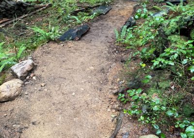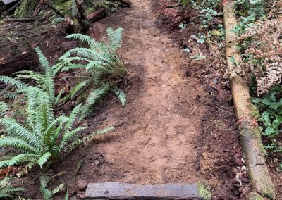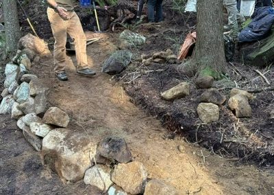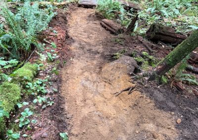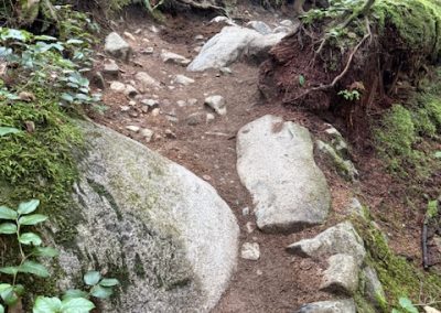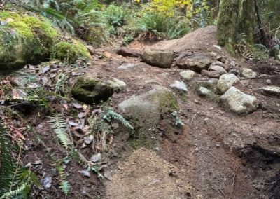 – Cleared roots, rocks, and excess fill from trail entrances for improved access and better water management