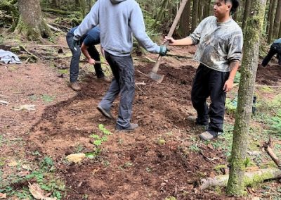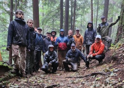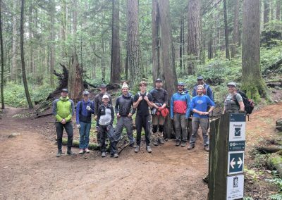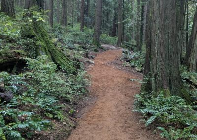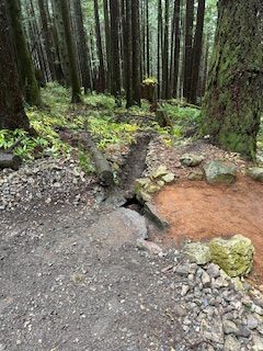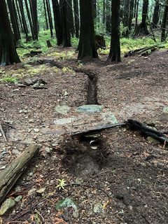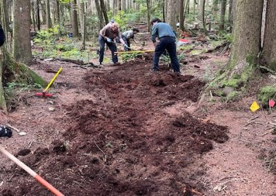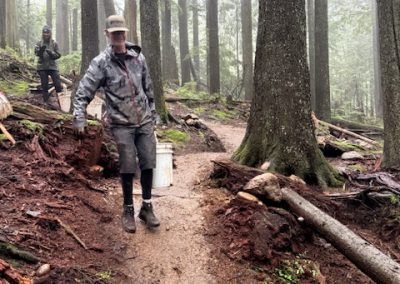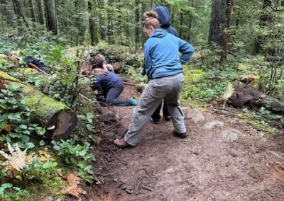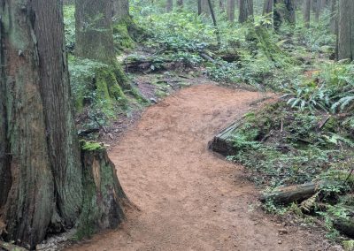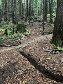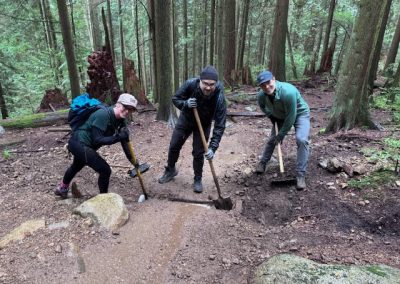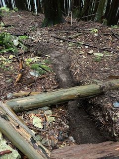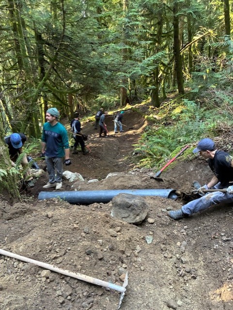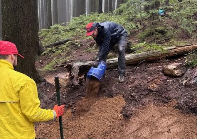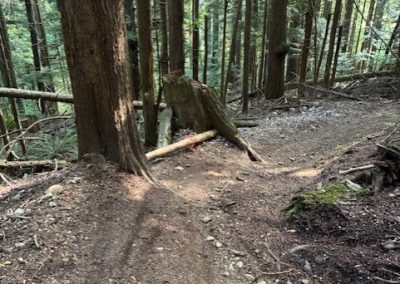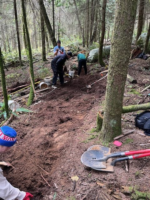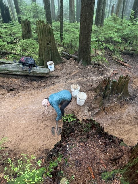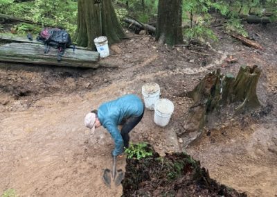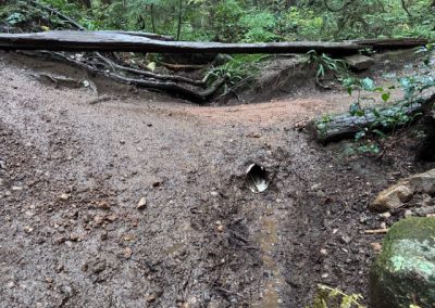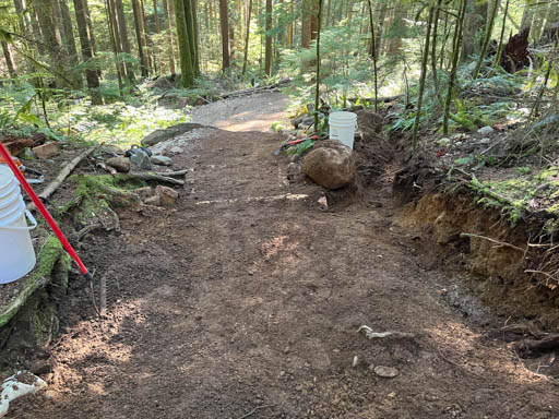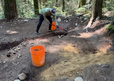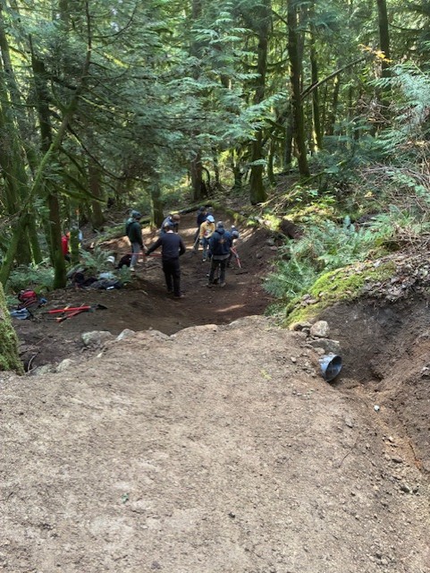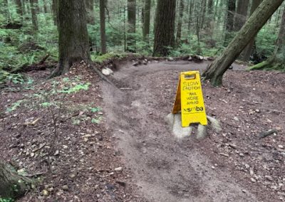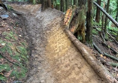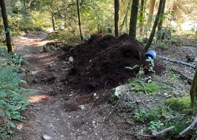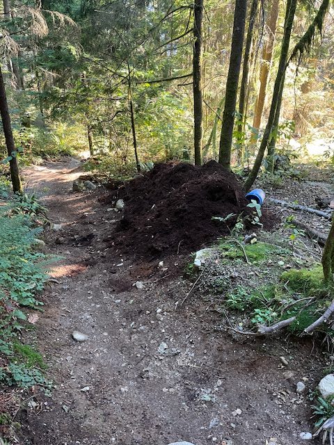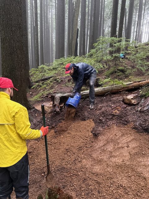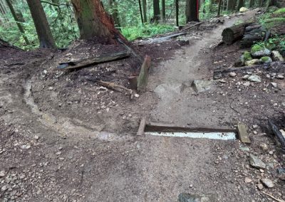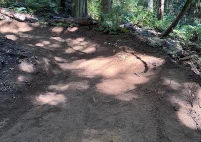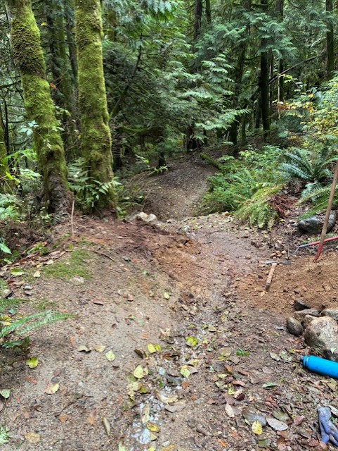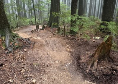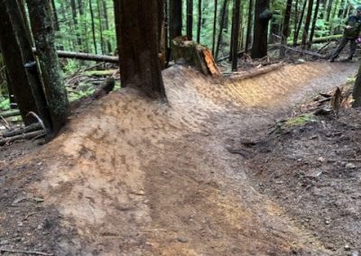 This Seymour favourite required erosion damage repairs and a host of drainage systems reestablished. Multiple corners and trail sections received fresh dirt. Many existing drains were cleared, and volunteers installed one new drain to improve water management.
