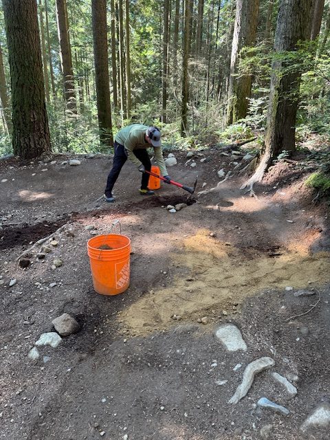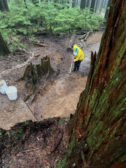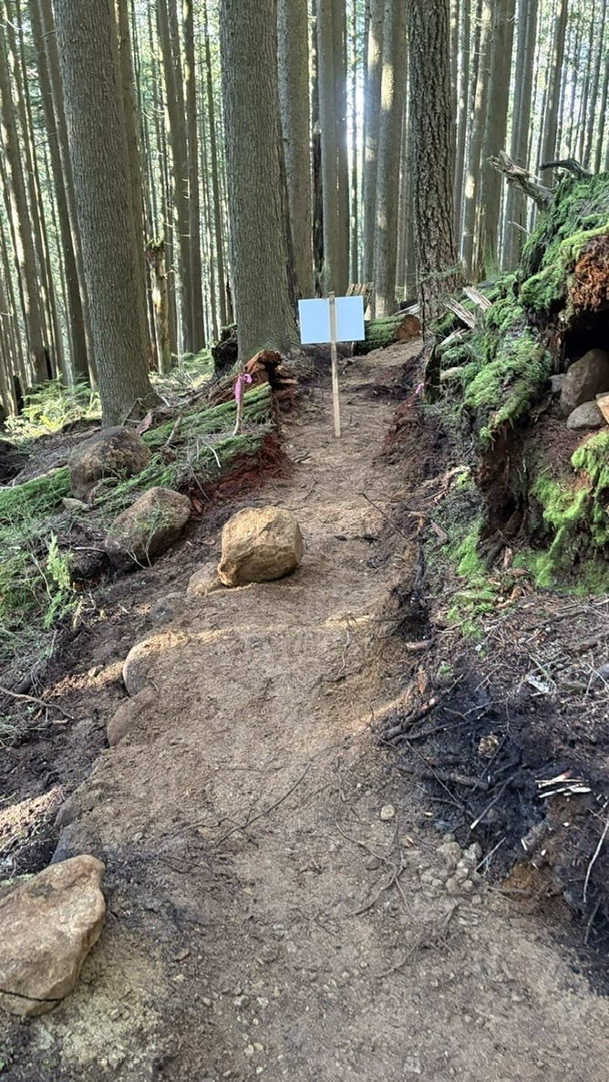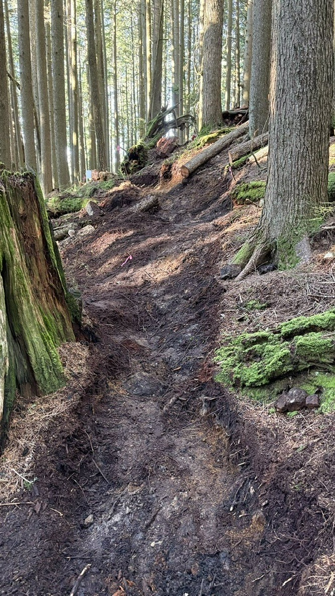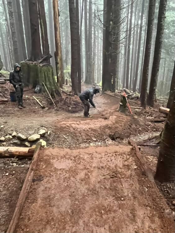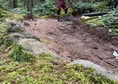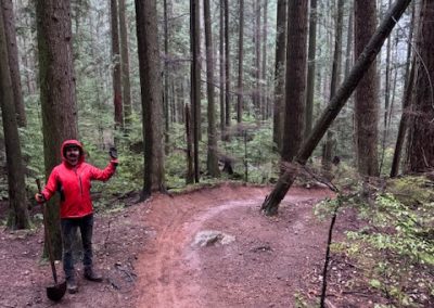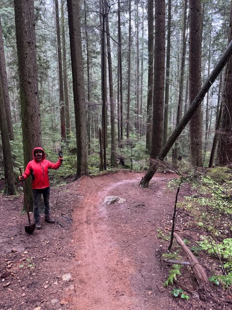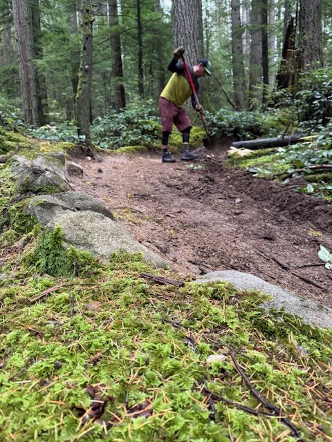 Is there anything better than cutting in fresh trail? King Of The Shore reroute work continues. Focus on removal of organic material from the re-route sections. Thanks to Brent Hillier and all volunteers.