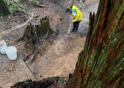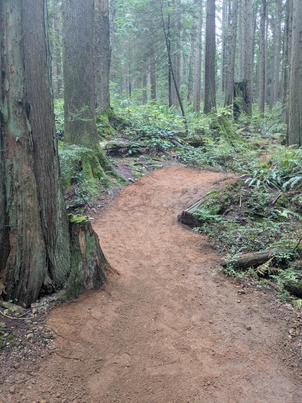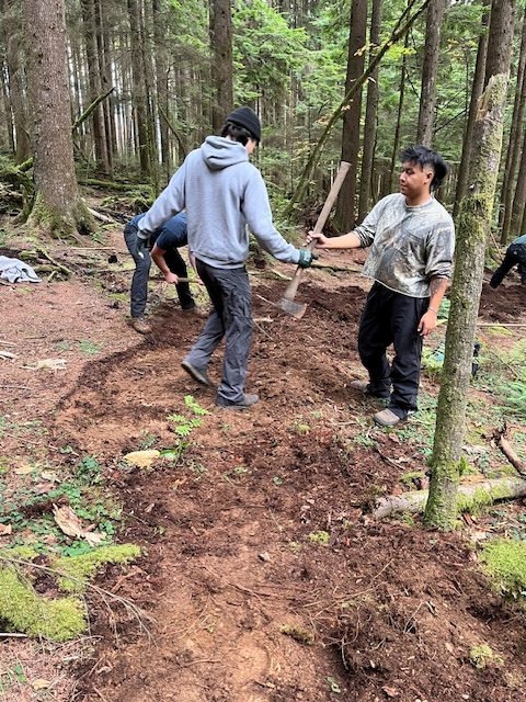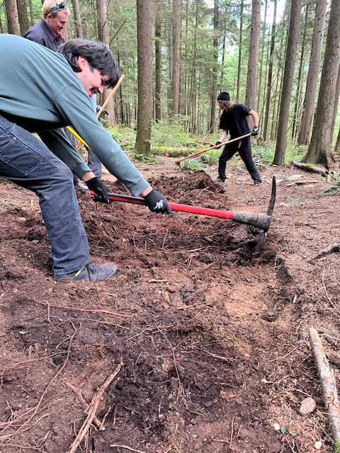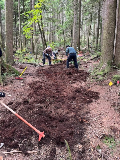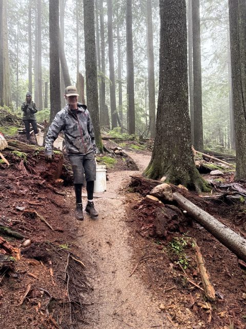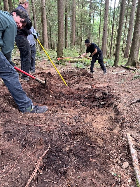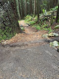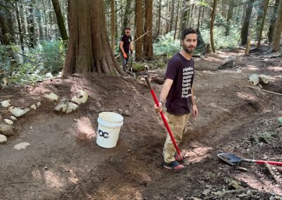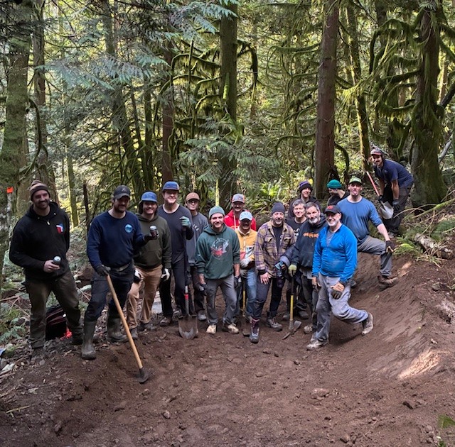 Is there anything better than cutting in fresh trail? King Of The Shore reroute work continues. Focus on removal of organic material from the re-route sections. Thanks to Brent Hillier and all volunteers.
