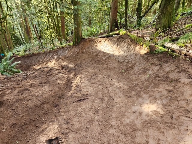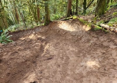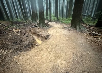 Drop # 1 The landing for the drop was reworked slightly. Berm # 1 The berm was completely rebuilt. Drainage ditch was moved from the left to the right of the trail.
