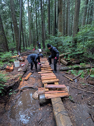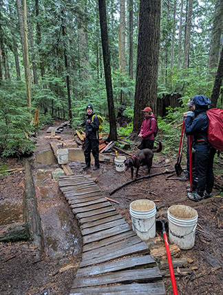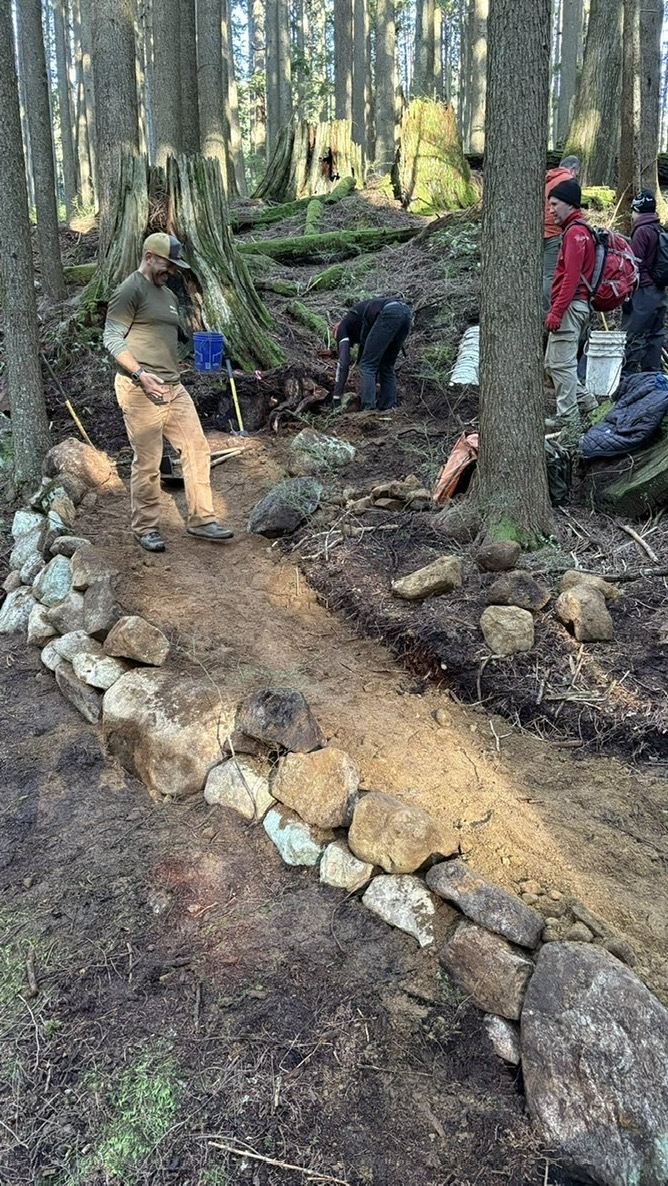 In preparations for winter, volunteer work has been completed on Wardens climb with focus on French drain clearing and trail tread maintenance throughout. Work also addressed a small reverse grade section that will require additional work planned for spring.