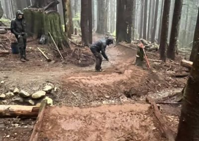 Reestablished drainage at several key points and repaired multiple eroded trail sections. Widened one corner to improve the riding line and drainage flow. Cleared and widened drains to restore proper water management.