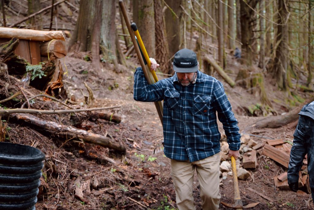 Mark taught me to take my time and build it right no matter what. I had a tendency to want to rush before building regularly with Mark. Former NSMBA volunteer Teit taught me more about line choice and general trailwork efficiency; where is best to spend time and where to ignore. The boogie nights and Seymour crew opened my eyes to what is possible when building flow and jumps on the shore.