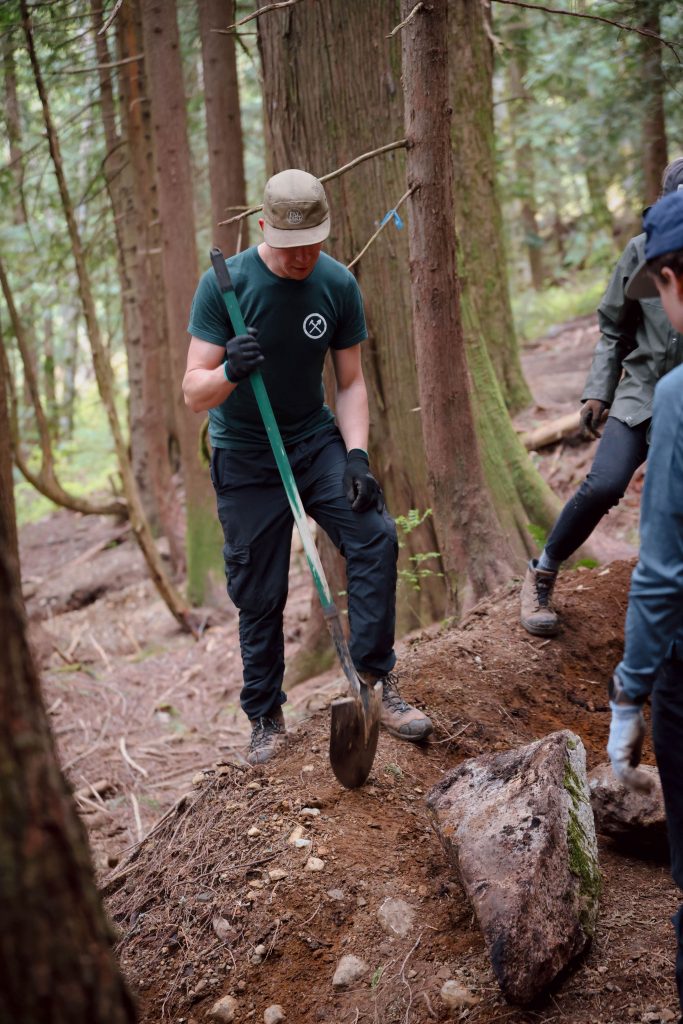 Building was something that I was curious about from the early days, the idea of creating a new trail excited me and maintaining an existing one seemed obvious. I dove in head-first after graduating University. I went to a public trail day and was the last guy there still digging, and the person in charge offered me a summer job maintaining mountain bike trails. From then on I’ve been building regularly.